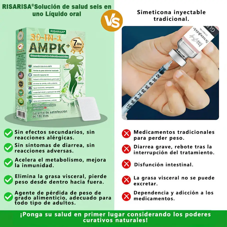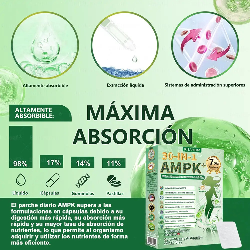 Desarrollado por un equipo global de expertos en bio-nutriciรณn y tecnologรญa transdรฉrmica, Risarisaยฎ representa la evoluciรณn definitiva en el bienestar metabรณlico. Su fรณrmula de Triple Acciรณn AMPKย (Berberina, Gynostemma y Hesperidina) estรก diseรฑada para atacar especรญficamente la grasa abdominal rebelde y activar su metabolismo las 24 horas.